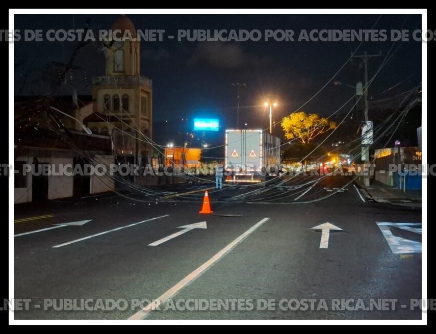 Posteriormente, cerca de las 3:00 a.m., el vehículo pesado transitó por el sitio y se llevó los cables, lo que generó la caída total de un poste y daños de consideración en otro. Un tercer poste presenta afectaciones y está siendo evaluado por personal técnico.