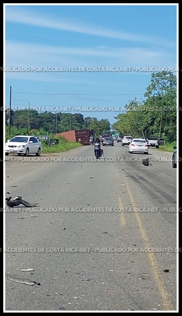 Un accidente de tránsito ocurrido minutos antes de las 11:00 a. m. de este domingo movilizó a los cuerpos de emergencia sobre la ruta 34, Costanera Sur, en el sector de La Inmaculada de Quepos, cerca de una llantera.