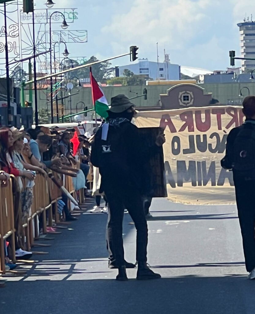 Los manifestantes han hecho oír su voz con reclamos sobre el maltrato animal y demandas relacionadas con la libertad de Palestina, mientras transcurría el desfile de caballos en San José. A pesar de su presencia, no se han reportado altercados ni incidentes relevantes hasta el momento.