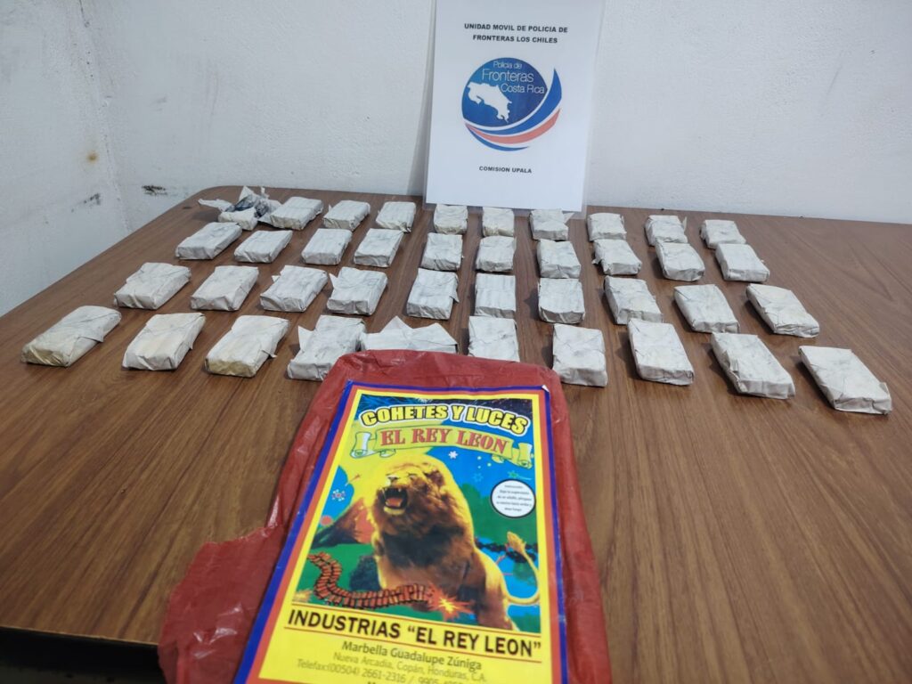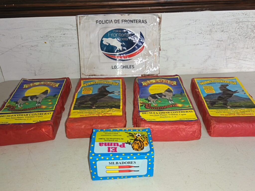 En Upala, oficiales de fronteras intervinieron a dos hermanas apellidadas Ávalos, que transitaban en una motocicleta y portaban una gran cantidad de pólvora en una bolsa plástica. Una de ellas indicó espontáneamente a las autoridades que la compraron en Nicaragua.