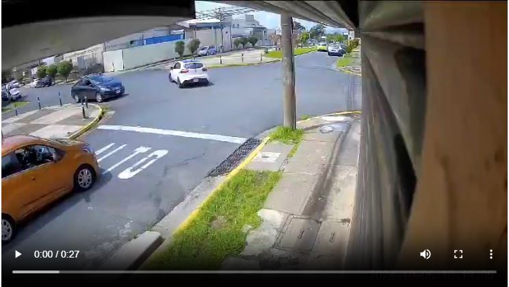 Video registro el momento en que un vehículo liviano, el cuál se pasa la señalizacion de alto, colisiona con una motocicleta en el sector de La Peregrina en La Uruca, unos 200 metros al Norte de la Kia.