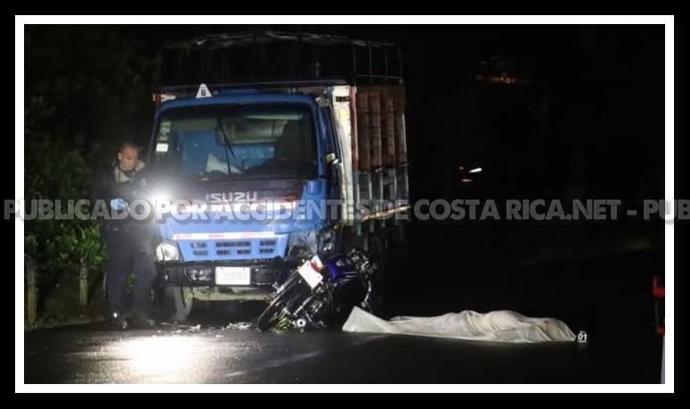 𝙋𝙤𝙧 𝘼𝙘𝙘𝙞𝙙𝙚𝙣𝙩𝙚𝙨𝙙𝙚𝙘𝙤𝙨𝙩𝙖𝙧𝙞𝙘𝙖.𝙣𝙚𝙩. Un motociclista falleció la noche del domingo tras colisionar contra un camión de carga liviana en Los Ángeles de Río Jiménez, en Guácimo de Limón.