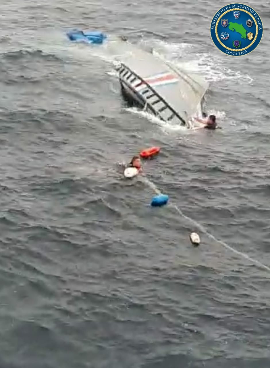 Arias detalló que esta mañana, cuando la tripulación de la lancha interceptora GC45-3 navegaba cerca de Punta Burica, a unos 30 kilómetros de la entrada al Golfo Dulce, un fuerte oleaje de unos tres metros inundó la nave por la parte de popa, es decir la parte trasera de la nave, provocando el apagado de los motores y el hundimiento de la lancha, todo lo cual ocurrió en aproximadamente dos minutos.