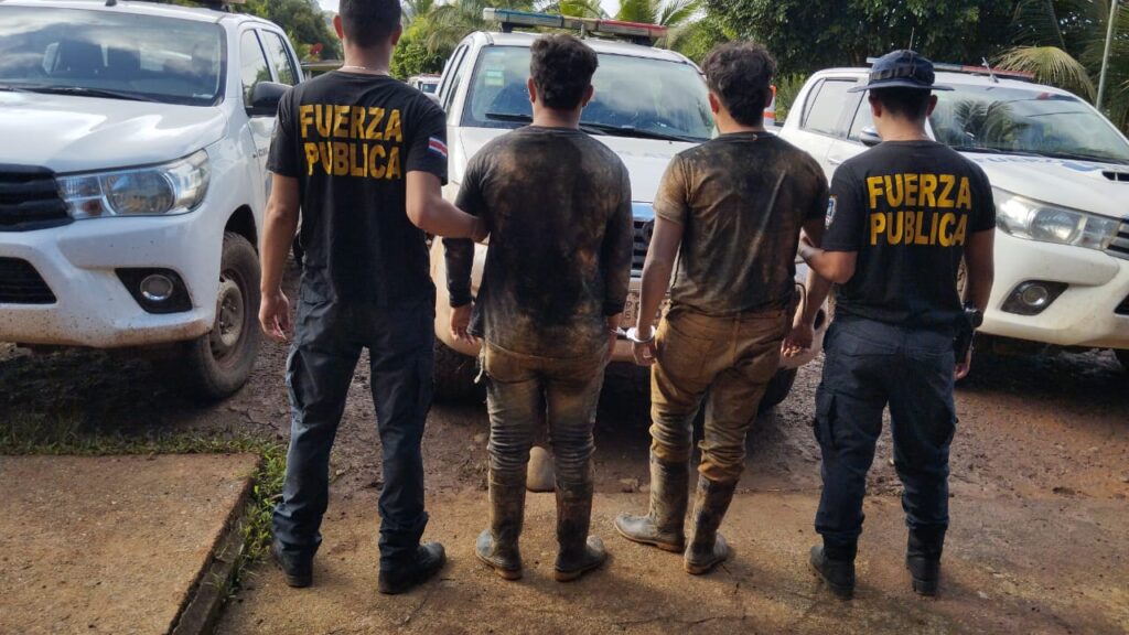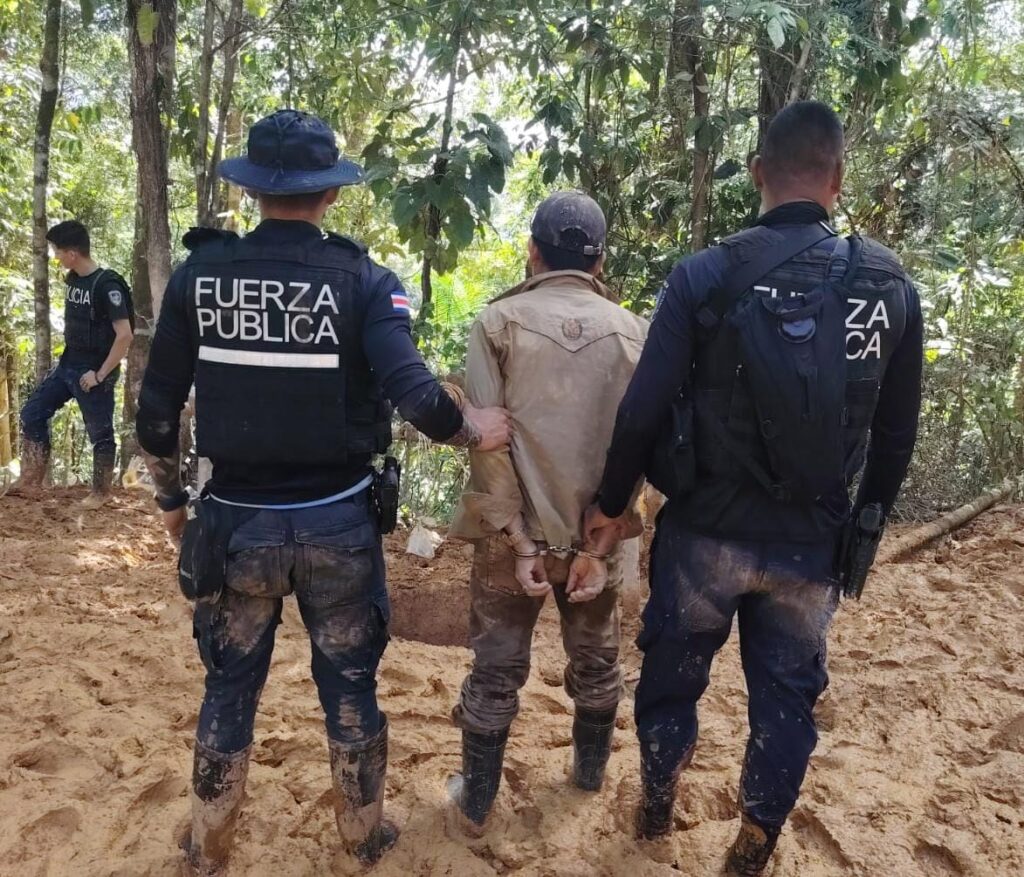 Oficiales de la Fuerza Pública, destacados en Crucitas de Cutris, frontera norte, detuvieron esta mañana a tres nicaraguenses en condición migratoria irregular, los cuales son sospechosos de practicar la minería ilegal.