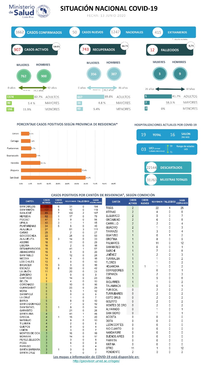 Sábado 13 de junio, 2020. Al 13 de junio se registran 50 nuevos casos de...