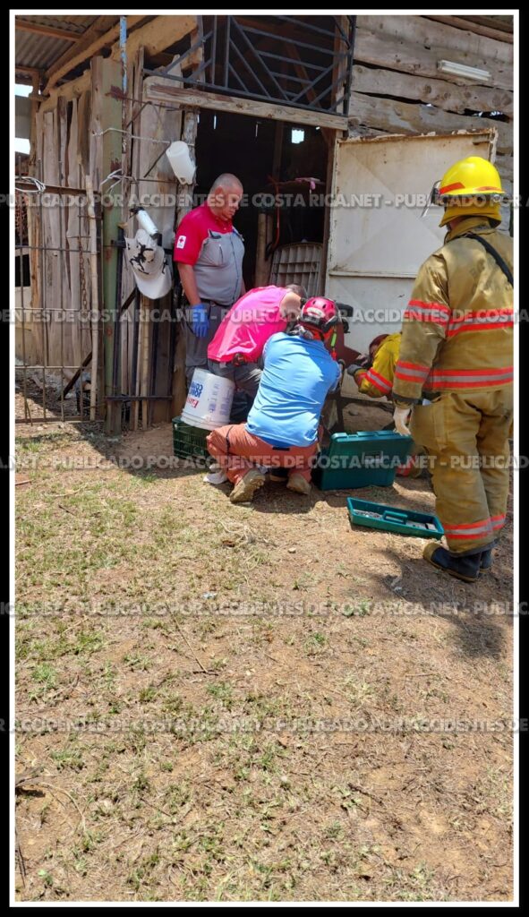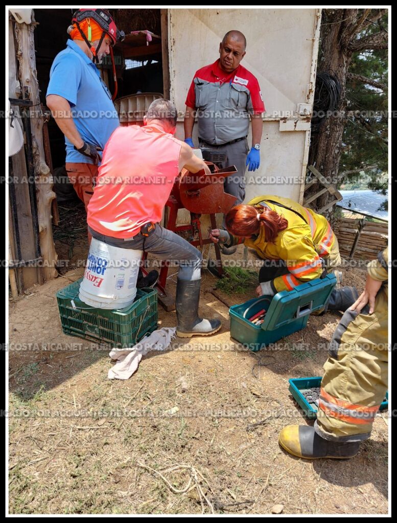Una situación de emergencia se registró en Salitrillos de Aserrí, específicamente 150 metros del CTP de Salitrillos en dirección hacia Tarbaca, donde una persona quedó atrapada en una máquina utilizada para cortar zacate.
