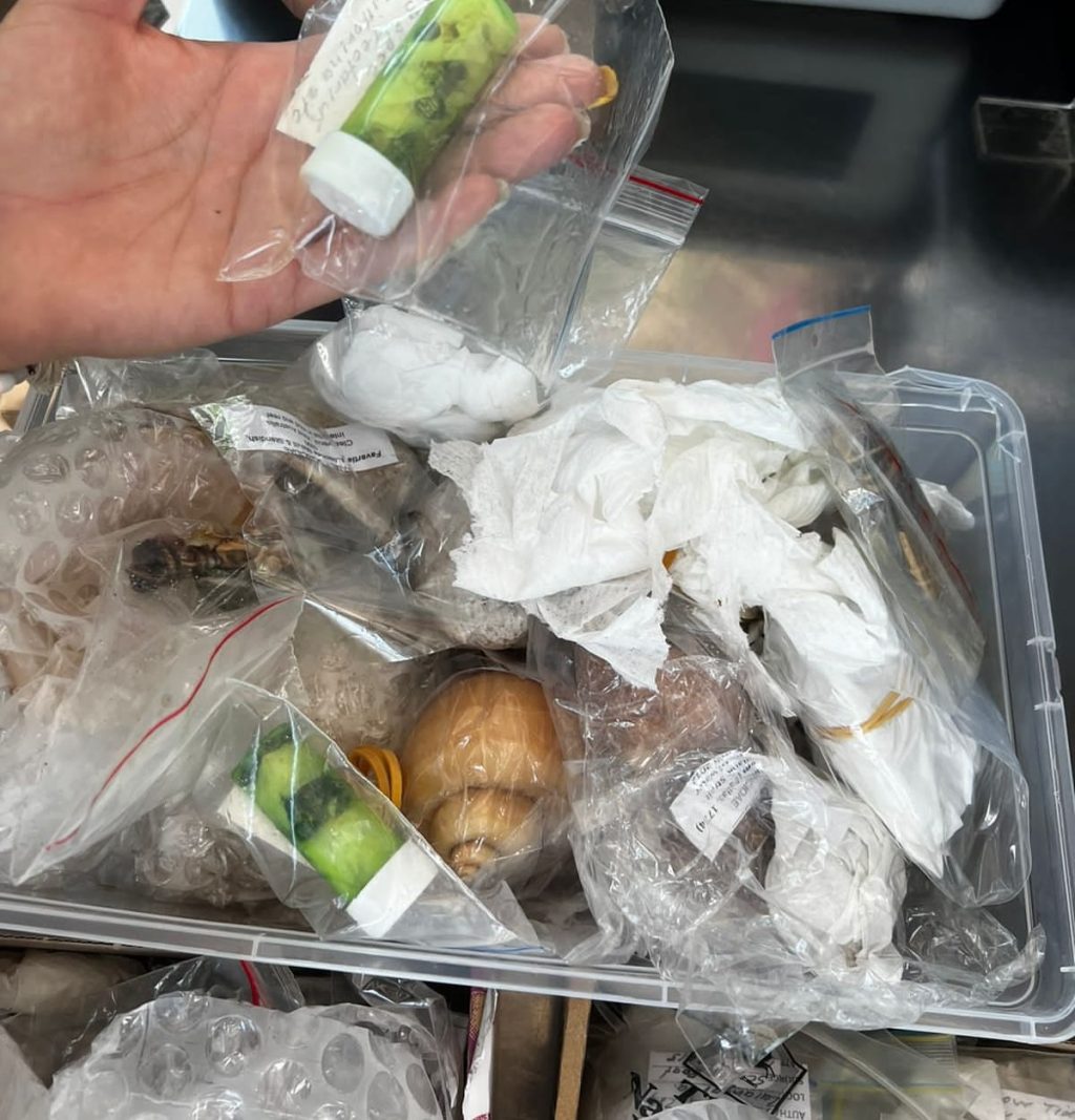 - Oficiales detectaron conchas marinas y envases que contenían lo que perecía moluscos marinos vivos