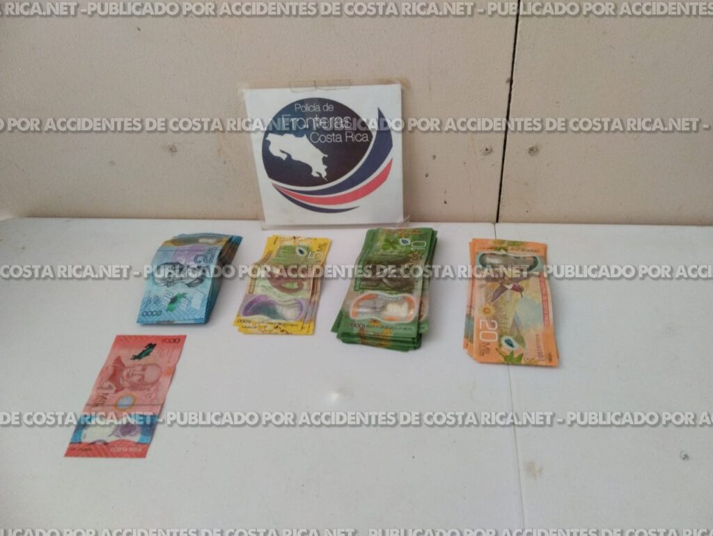 Oficiales de la Policía de Fronteras destacados en el sector de Tablillas, Los Chiles, sector fronterizo con Nicaragua, sorprendieron a un costarricense apellidado Ríos con una importante cantidad de dinero en efectivo, en el interior de un maletín que portaba.