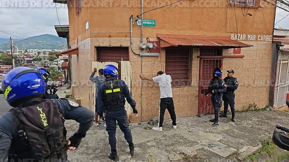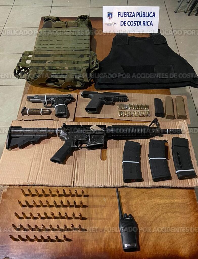 Dos chalecos antibalas, un arma larga tipo fusil con su respectiva munición y un arma menos letal fue parte de lo ubicado por la Fuerza Pública la noche de este lunes en Tejarcillos de Alajuelita, San José.
