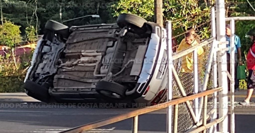 ??? ?????????????????????.???. Cuerpos de emergencias atendieron esta mañana el vuelco de un vehiculo liviano en Puriscal.