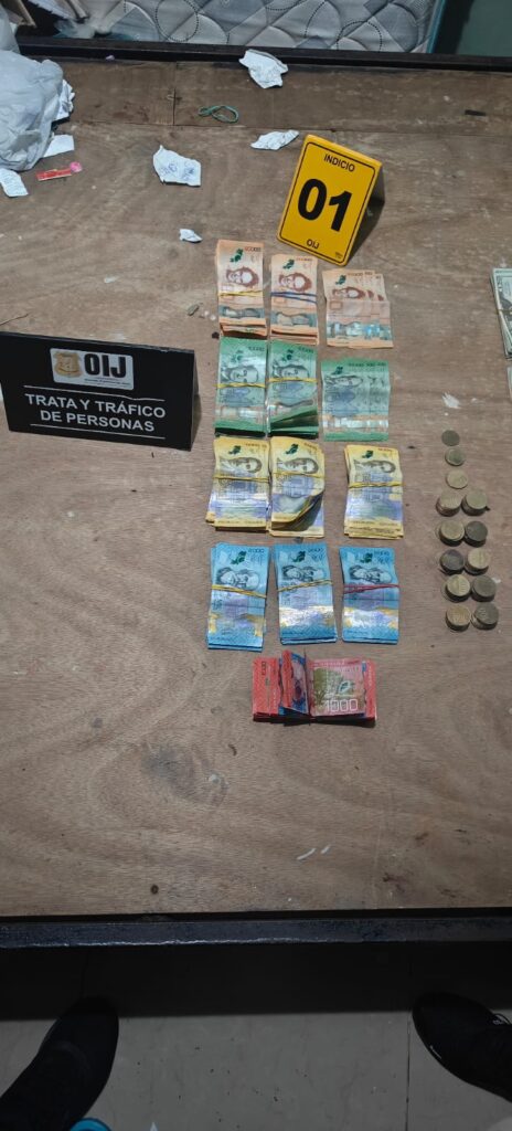Adicionalmente, las autoridades detuvieron a una mujer de nacionalidad italiana y a un hombre de nacionalidad alemana, quienes presuntamente mantenían a su hija recluida en un hotel del centro de San José con fines de explotación sexual. Durante esta intervención se decomisó dinero en efectivo por ₡4.120.325 y $4.185 dólares estadounidenses.