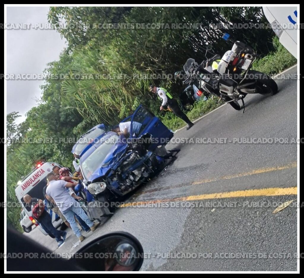 Un violento choque entre dos vehículos se registró la tarde de este jueves en la Ruta 32, específicamente a la altura del kilómetro 35, en el sentido Guápiles–San José.