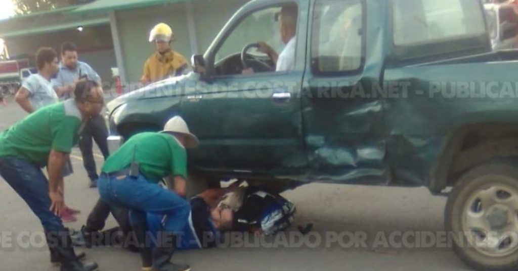 El motociclista permanecio prensado debajo del vehiculo por varios minutos, y una vez liberado se traslado al centro medico en condicion roja.