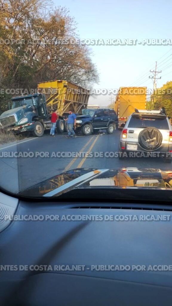 En el sitio se reportó una colisión entre un vehículo de carga pesada y un vehículo liviano. Según información preliminar, una persona quedó prensada en el vehículo liviano, lo que requirió la intervención de los Bomberos para su rescate.