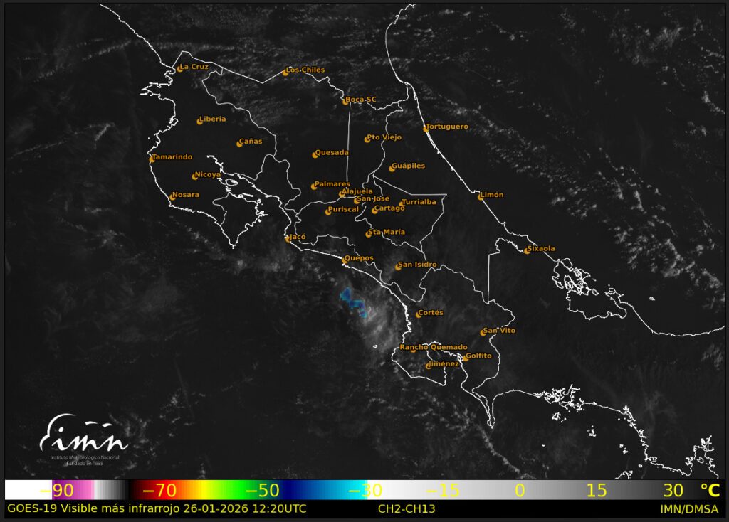El IMN indicó que, bajo este patrón, se mantendrán condiciones mayormente secas y estables al inicio de la semana, mientras se aproxima el siguiente empuje de aire frío que modificará gradualmente el comportamiento del viento.