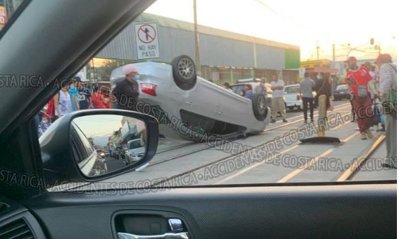 Esta tarde al ser las 5:39 pm se registro el vuelco de un vehiculo liviano...