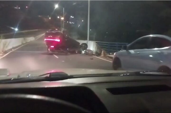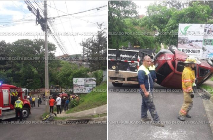 Automóvil se vuelca frente a estación de Bomberos; dos heridos trasladados a centro médico 𝙋𝙤𝙧...