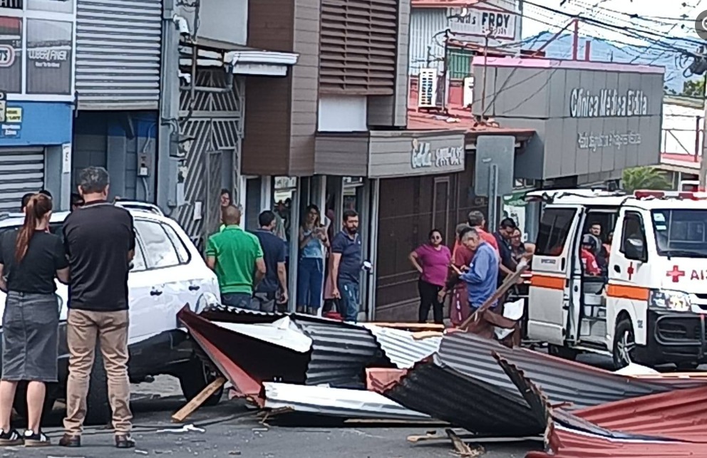 Personal de la Oficina de Prensa de la Cruz Roja confirmó los hechos: “Se desprendió parte del techo de una estructura, el cual impactó a un hombre. La persona presenta lesiones de consideración y fue trasladada en condición urgente al Hospital de Grecia”.