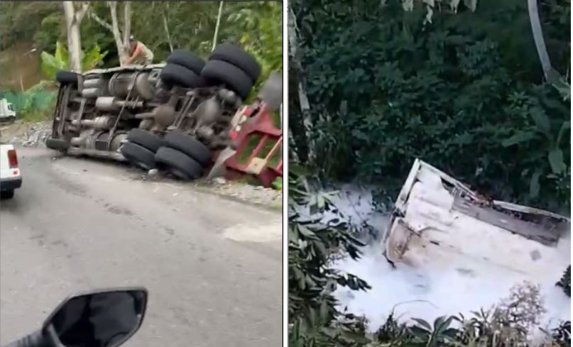 El suceso fue reportado a las 4:40 p. m. en barrio El Recreo, sobre la ruta 10, a aproximadamente 150 metros al sur del Autoservicio Ruta 10. Por razones que aún no han sido determinadas, el camión, que se desplazaba en sentido hacia Turrialba, se volcó y terminó precipitando su carga al fondo del guindo.
