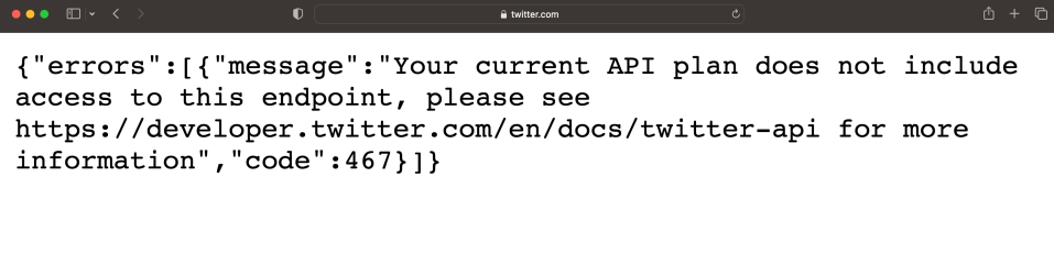 Al intentar iniciar sesión en Twitter, los usuarios se encontraron con un aviso que indicaba que su plan actual no incluía el acceso al punto final, y presentaba el misterioso error “código 467”.