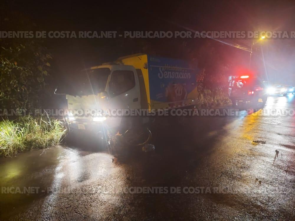 Según la información confirmada a Accidentes de Costa Rica.net , se dio una colisión entre un camion repartidor y una motocicleta.