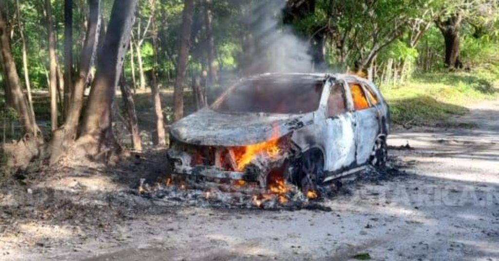 ??? ?????????????????????.???. Dos cuerpos calcinados y un vehiculo en llamas, fue el macabro hallazgo esta mañana en el sector de Cañitas de Pijije en Bagaces.