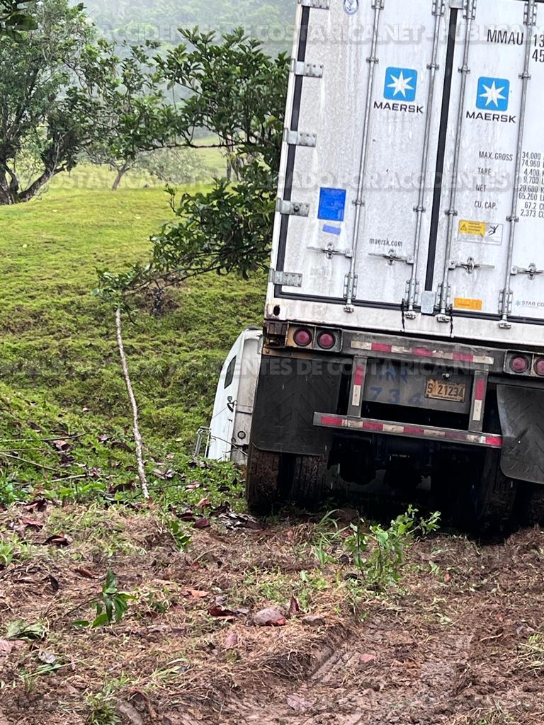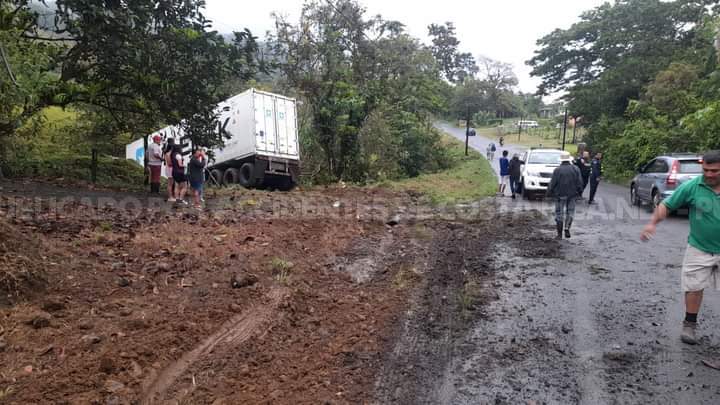 Uno de los vehiculos pesados se salio de la via. Mientras tanto el paso se encuentra regulado.