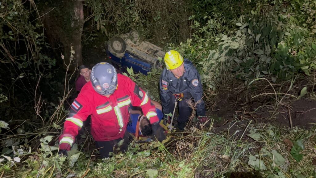 Un aparatoso accidente de tránsito se registró minutos antes de la 1:00 a. m. de este martes en la carretera Interamericana Sur, Ruta 2, específicamente en el sector de Cerro de la Muerte, en Cartago, luego de que un vehículo se precipitara a un guindo de aproximadamente 10 metros.