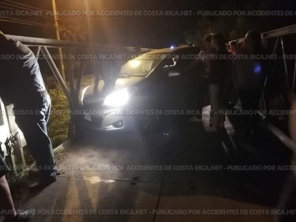 ??? ?????????????????????.???. Esta noche se presento la colisión de un vehículo liviano tipo automovil contra un puente bailey ubicado en en Valle Azul de Paquera.