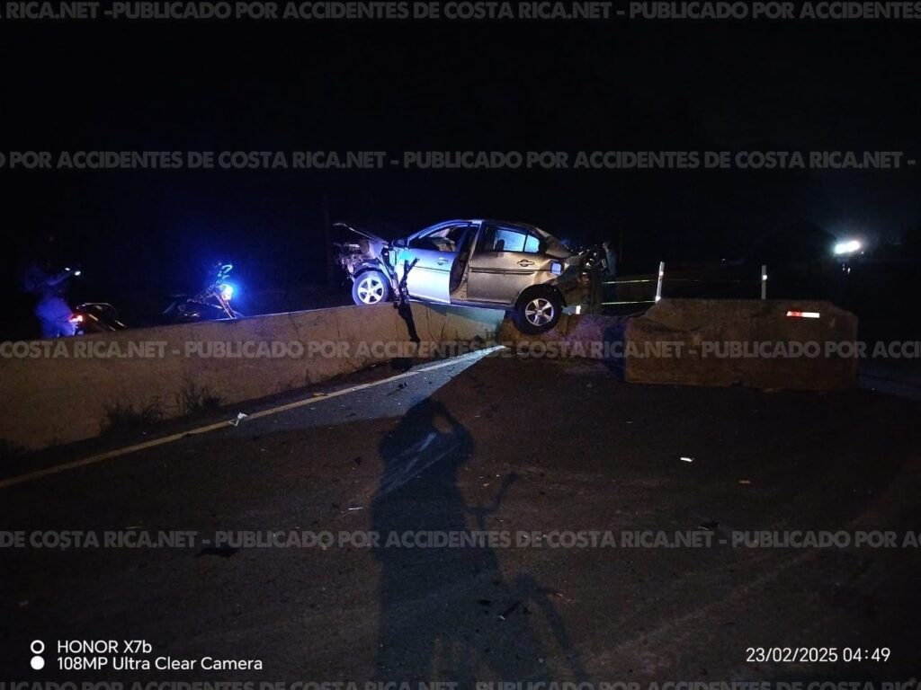𝙋𝙤𝙧 𝘼𝙘𝙘𝙞𝙙𝙚𝙣𝙩𝙚𝙨𝙙𝙚𝙘𝙤𝙨𝙩𝙖𝙧𝙞𝙘𝙖.𝙣𝙚𝙩. A la 1:54 a.m. se registró un accidente de tránsito en la Ruta 32, sector de Búfalo, frente a una estación de servicio. Por razones que se desconocen, el conductor de un vehículo perdió el control y colisionó fuertemente contra la barrera de protección, quedando sobre ella.