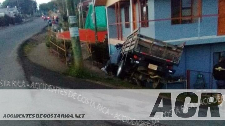 ??? ?????????????????????.???. Esta madrugada un vehiculo de carga liviana se salio de la via y se incrusto en una vivienda en San Lorenzo de Tarrazú.