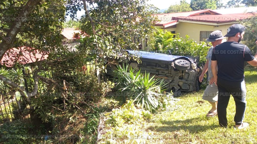 ??? ?????????????????????.???. Esta mañana , minutos despues de 8:50 am , un vehículo liviano se salió de la vía y terminó volcando en Piedades de Santa Ana.