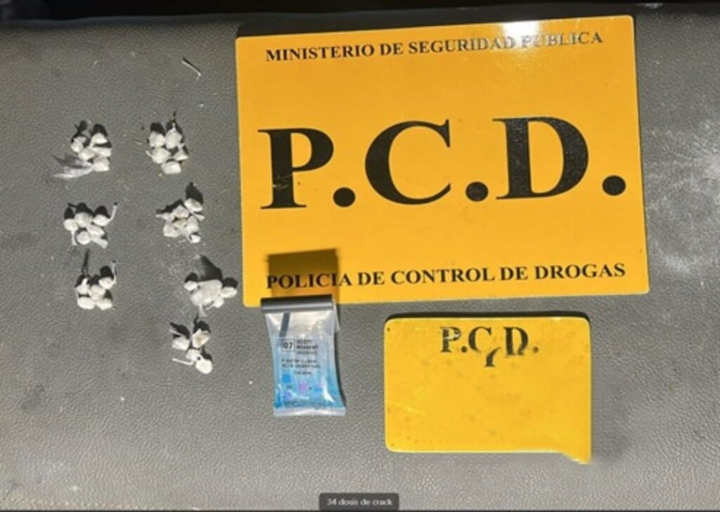 A ellos, los agentes antidrogas les decomisaron 67 dosis de crack, 17 envoltorios con marihuana y 14 mil colones en efectivo, así como implementos para la preparación y dosificación de drogas.