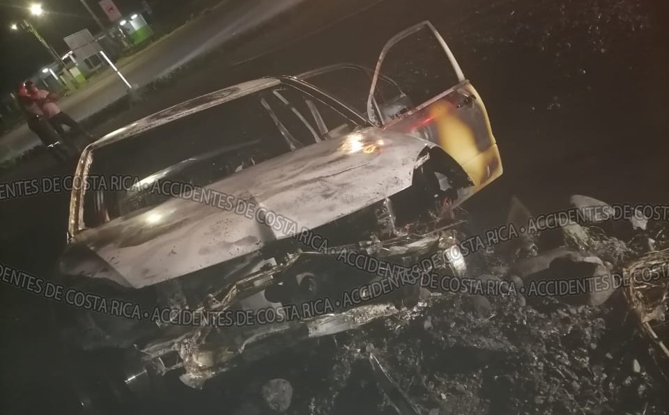 Anoche el personal de Bomberos atendio fuego en un vehiculo liviano en el sector de Guapiles, en el cruce de La China, frente al Rest Robertos.