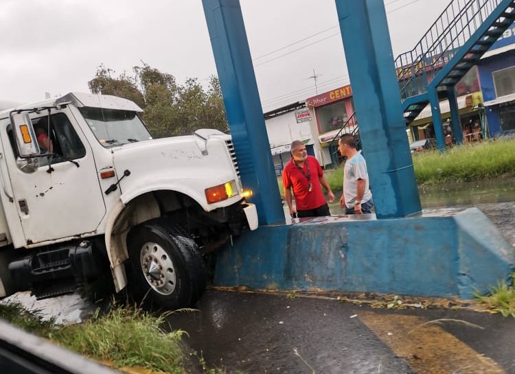 Este fin de semana el conductor de un camion perdio el control de su vehiculo y termino colisionanando contra el puente peatonal en el sector de los semaforos de Hatillo.