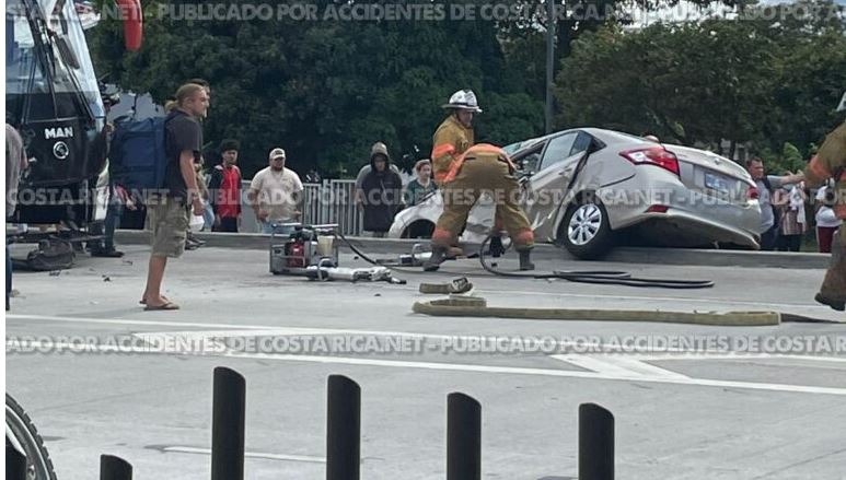 𝙋𝙤𝙧 𝘼𝙘𝙘𝙞𝙙𝙚𝙣𝙩𝙚𝙨𝙙𝙚𝙘𝙤𝙨𝙩𝙖𝙧𝙞𝙘𝙖.𝙣𝙚𝙩. En una impactante colisión entre un vehículo liviano y un autobús en la Radial Aeropuerto, frente al Centro Comercial Mango, Bomberos de Alajuela respondieron rápidamente para liberar a un adulto mayor que quedó atrapado en el incidente.