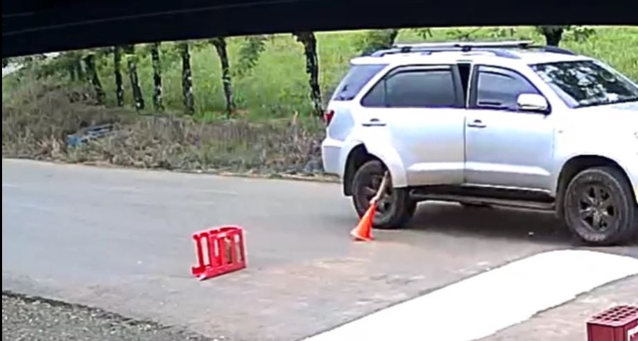 Deseamos compartir este video, que muestra el momento en que pasa un vehiculo de muy alto valor , se detuvo y uno de los ocupantes muy tranquilamente tomo el cono, y se lo llevo.