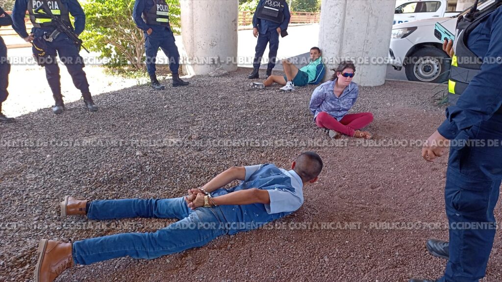 Ante la situación, los policías se dieron a la tarea de perseguirlo, hasta lograr detenerlo en la carretera que da ingreso al cantón de Bagaces, uno de los ocupantes lanzó un arma de fuego en vía pública.
