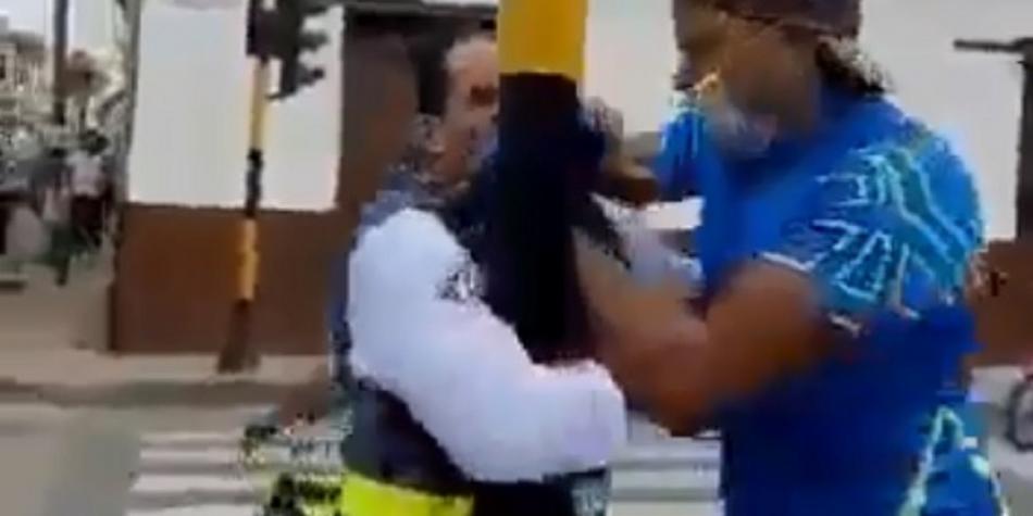Mientras el uniformado seguía con el protocolo establecido para esos casos, el hombre descendió de la motocicleta, lo tomó por el cuello y lo estrelló contra una señal de tránsito. En ese momento algunas personas que evidenciaron lo que ocurría intervinieron y evitaron que lo siguiera golpeando.