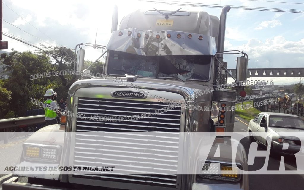 En el lugar una mujer abria saltado de un puente cayendo sobre un cabezal que circulaba en la via, esto un kilómetro al este de Forum sentido Santa Ana- San José.