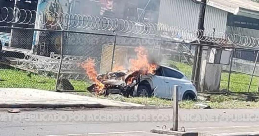 ??? ?????????????????????.???. Esta mañana personal de Bomberos de la region de Pococi, atendieron un vehiculo en llamas en Guapiles.