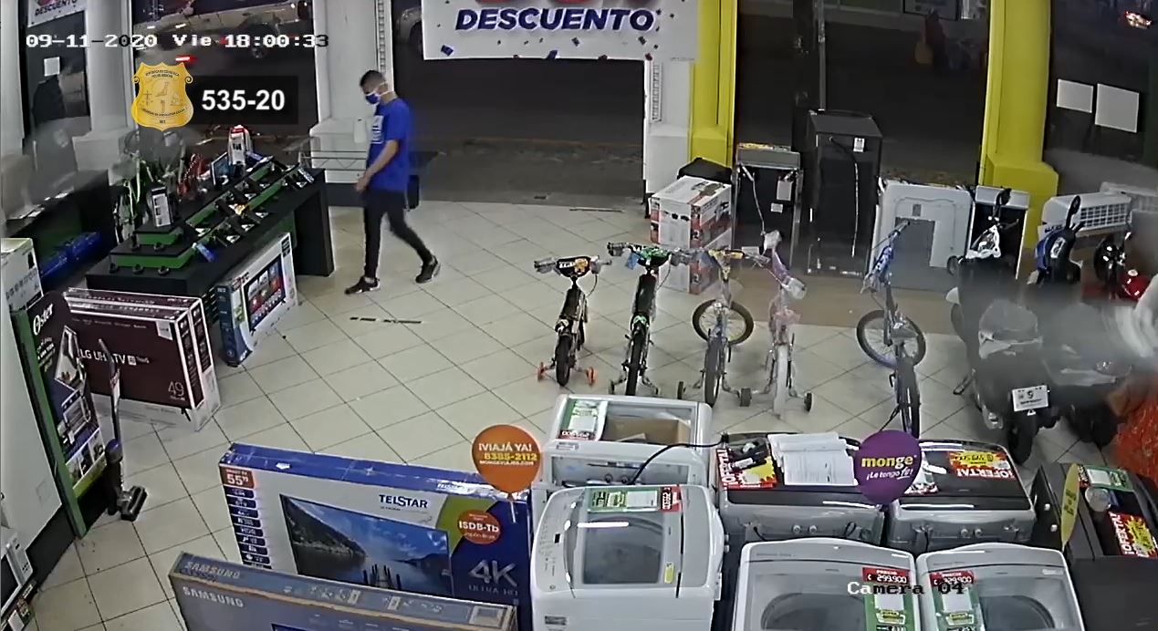 Al parecer el individuo ingresó el 11 de setiembre en horas de la tarde a un almacén localizado en el centro de Santa Cruz y hurtó un teléfono celular que se encontraba en un estante de exhibición.