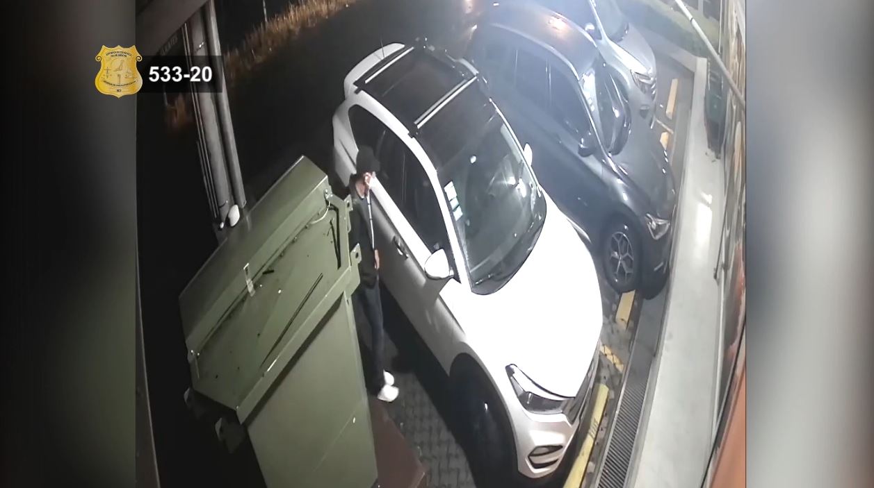 En apariencia el individuo es sospechoso de tachar un vehículo y sustraer varios artículos de su interior.