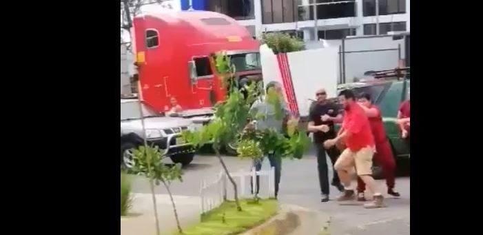 Nos hacen llegar un video que muestra el momento en que se inicia un zafarrancho entre el conductor de un trailer y el dueño de un local comercial en Coronado.