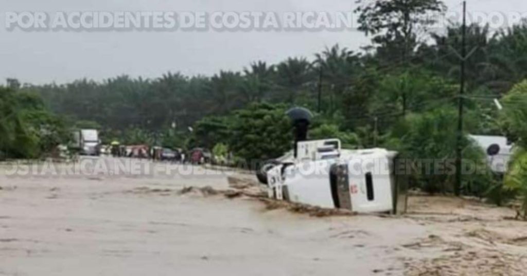 ??? ?????????????????????.???. El vuelco de un trailer , fue atendido esta tarde sobre la ruta 2, sector de La Esperanza de Rio Claro de Golfito.