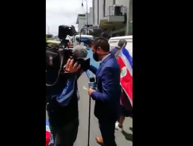 El siguiente video adjunto muestra el momento en que un grupo de manifestantes expulsan y emiten acusaciones en contra de un periodista y un camarografo de NC Once en el centro de San Jose.