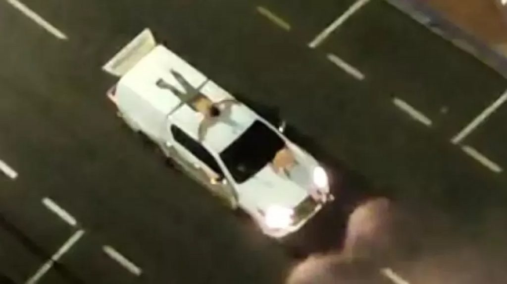 Según videos difundidos por vecinos en las redes sociales, algunas personas fueron amarradas en el capó del coche a modo de “escudo humano” durante la fuga de los delincuentes.