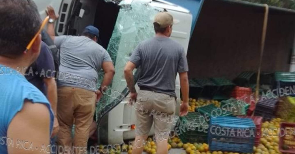??? ?????????????????????.???. El vuelco de un camion cargado de naranjas, puso a correr las autoridades esta tarde en Acosta.