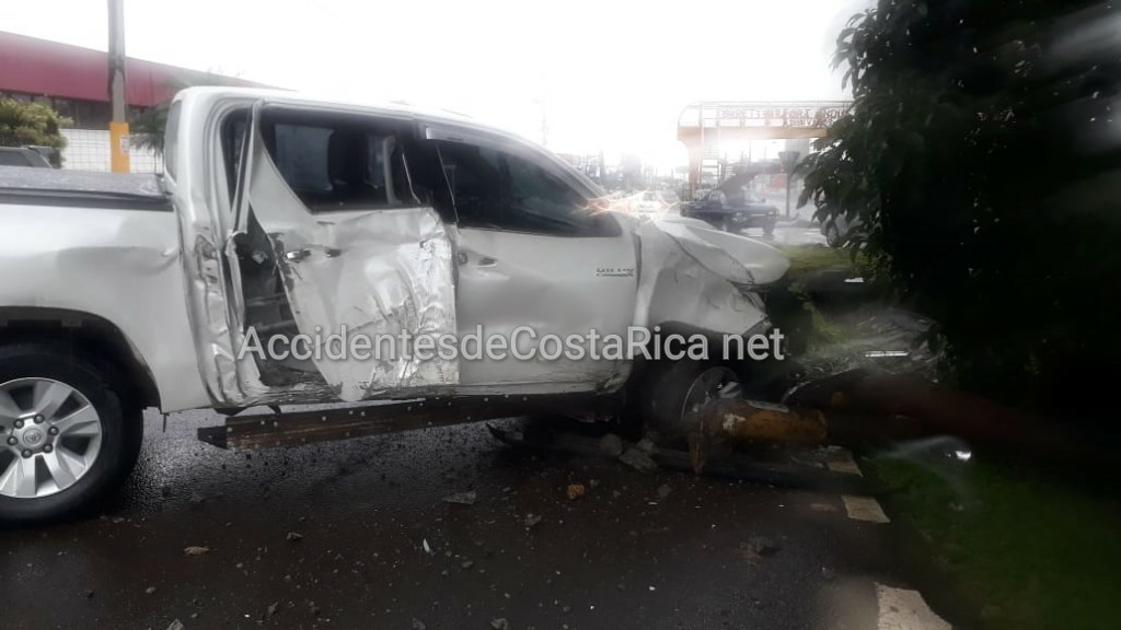 Un vehiculo tipo pick up, perdio el control y se salio de la via , chocanco contra un poste del tendido electrico, en el sector del peaje.