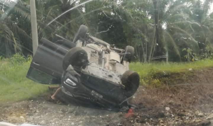 Por razones que se desconocen , el conductor del vehiculo perdio el control y termino volcando el vehiculo sobre su techo.